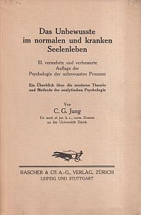 Jung, Carl G.: Das Unbewusste im normalen und kranken Seelenleben. ein Überblick über die moderne Theorie und Methode der analytischen Psychologie. 3., vermehrte und verbesserte Auflage Zürich: Rascher 1926. 8°. 166 S. Broschiert (altersgemäss gut erhalten)
