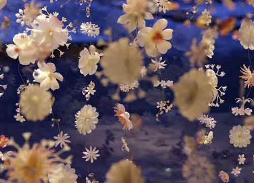bildreich karten PK 670: l’air des fleurs II. Querformat. (Weihnachtsschmuck, Weihnachtsdekoration, Lichterketten, Schaufenster, Blüten, Kunstblüten, Plastikblumen, Firlefanz, Glasperlen) Mindestbestellmenge: 15 Karten (auch assortiert).