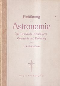 Kaiser, Wilhelm: Einführung in die Astronomie auf Grundlage elementarer Geometrie und Rechnung. Basel: Geering 1938. Gr.-8°. 107 S., 40 Blatt-grossen Figuren-Tafeln und Tabellen, Halbleinen (Besitzervermerk auf Vorsatz; Einband leicht angestaubt; sonst altersgemäss gut erhalten) Text in Fraktur ab Seite 50.