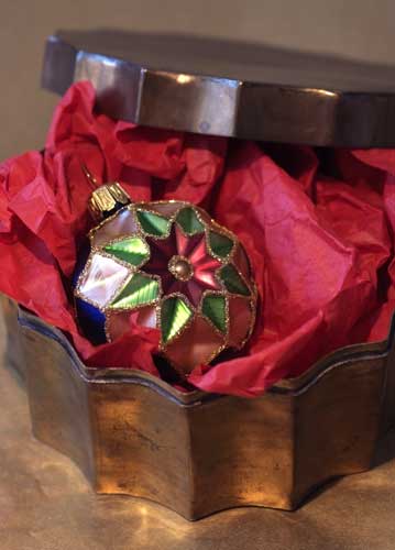 bildreich karten PK 771: kleinod. Hochformat. (Geschenk, Messing, Dose, Weihnachtsschmuck, Kugel, Stern, Papier)