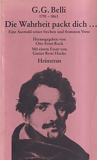 Belli, Giuseppe Gioachino: Die Wahrheit packt dich … eine Auswahl seiner frechen und frommen Verse. München: Heimeran 1978. 8°. 291 S., sw-Abbildungen, Leinen (Schutzumschlag teilweie abgeblasst; gut erhalten)