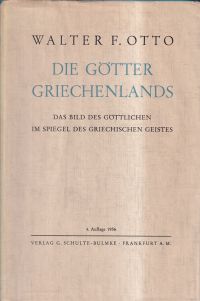 Otto, Walter F.: Die Götter Griechenlands. das Bild des Göttlichen im Spiegel des griechischen Geistes. 4. Aufl. Frankfurt/Main: Schulte-Bulmke 1956. Gr.-8°. 286 S 5 Taf. Leinen (Schutzumschlag mit leichten Randläsuren; gut erhalten)