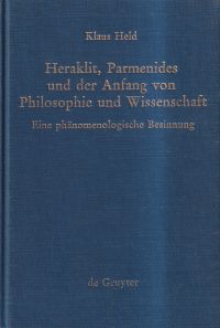 Held, Klaus: Heraklit, Parmenides und der Anfang von Philosophie und Wissenschaft. eine phänomenologische Besinnung. Berlin: de Gruyter 1980. XIV, 604 S. Leinen (Besitzervermerk auf Vorsatz; gut erhalten)
