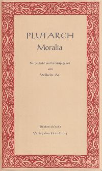 Plutarch: Moralia. Verdeutscht und hrsg. von Wilhelm Ax. Mit Einführung von Max Pohlenz. Leipzig: Dieterich 1942. XXVI, 335 S., Pappband (Papier altersbedingt leicht gebräunt; altersgemäss gut erhalten) (=Sammlung Dieterich, 47)