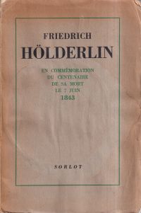 Hoffmeister, Johannes (Hrsg.): Friedrich Hölderlin. 1770 – 1843. Paris, Sorlot, 1943. Kl.-8°. 250 S. 1 Porträt, Broschiert Umschlag mit alten Wasserflecken; Kapital oben mit kleiner Fehlstelle; abgegriffen)