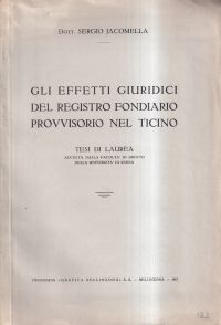 ![]() Jacomella, Gli effetti giuridici del registro fondiario provvisorio nel Ticino. (Umschlag) |