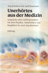 Reinhard, Jürg/Baumann, Adolf: Unerhörtes aus der Medizin. Gespräche eines Anthroposophen mit dem Physiker, Naturheilarzt und Bergführer Dr. med. Jürg Reinhard. Bern/Stuttgart: Hallwag 1989. 8°. 334 S., Illustrationen, Leinen (Buchblock leicht verzogen; sonst gut erhalten)